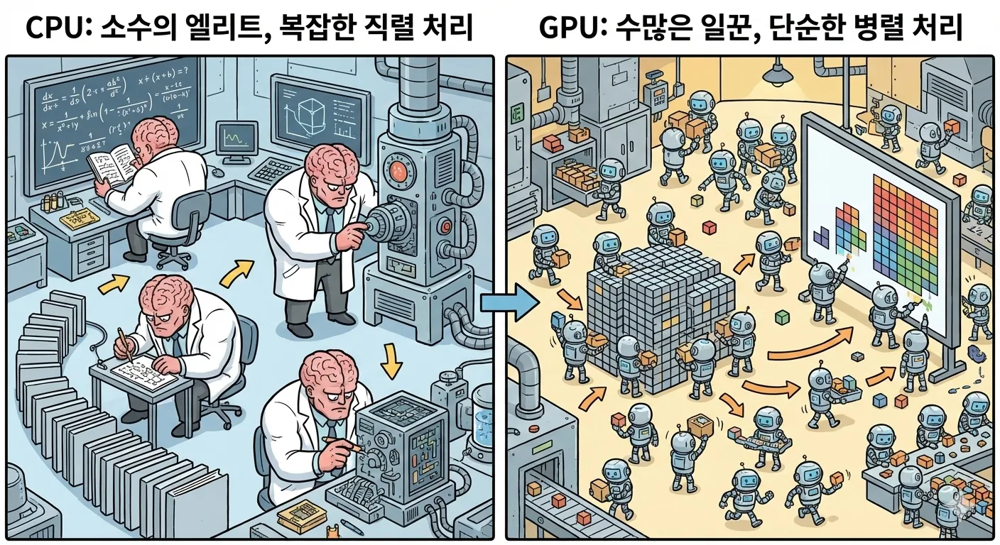 똑똑한 한 명(CPU)보다 부지런한 수천 명(GPU)이 AI엔 유리하다