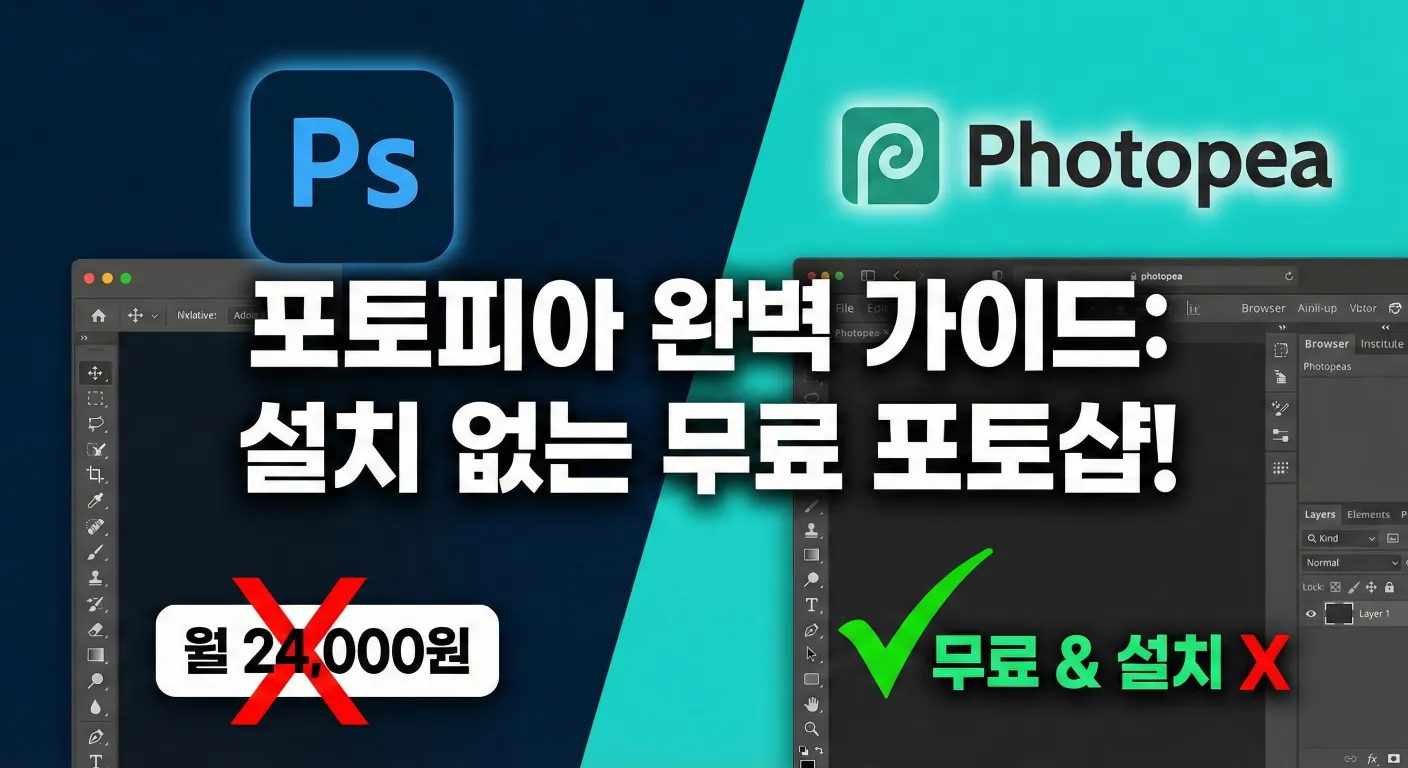 해결책은 바로 '포토피아(Photopea)'입니다. 회원가입도, 설치도 필요 없습니다. 즐겨찾기 하나면 인터넷이 되는 어디서든 '무료 포토샵'을 켤 수 있습니다. 오늘은 이 놀라운 툴을 200% 활용하는 방법을 소개합니다.