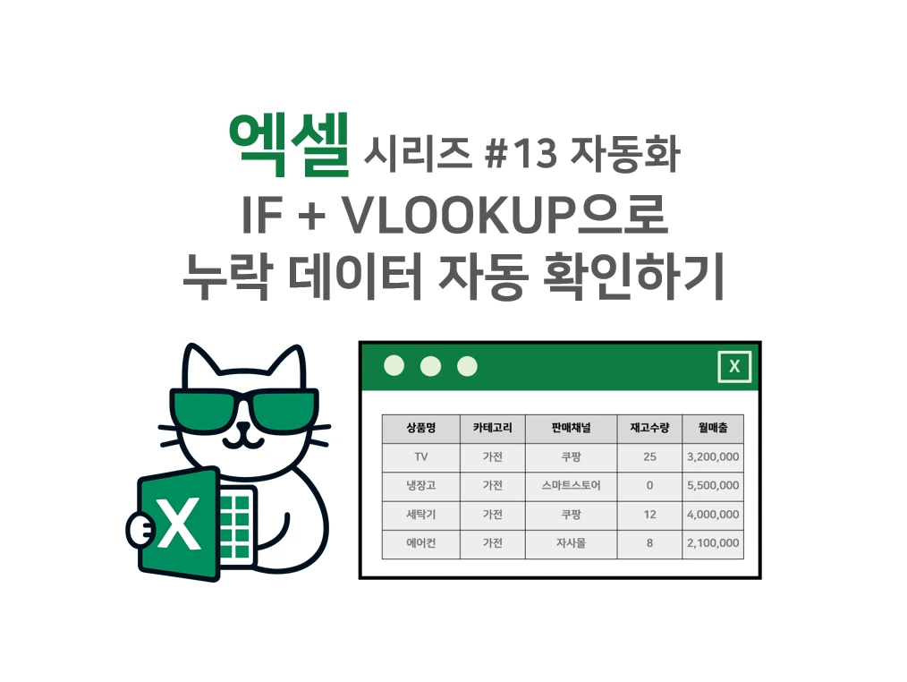 엑셀 시리즈 #13 자동화 - IF + VLOOKUP으로 누락 데이터 자동 확인하기