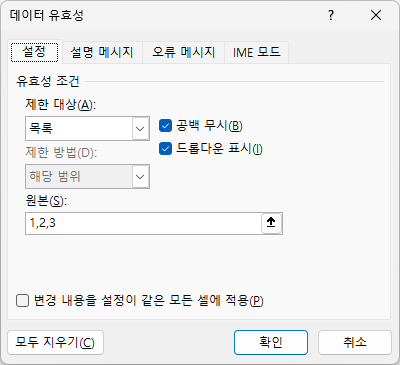 사용자가 부서를 선택할 수 있도록 드롭다운 메뉴(데이터 유효성 검사)를 만들어줍니다. 예를 들어 셀 E2에 “1:영업팀, 2:기획팀, 3:총무팀”을 선택하도록 설정합니다.