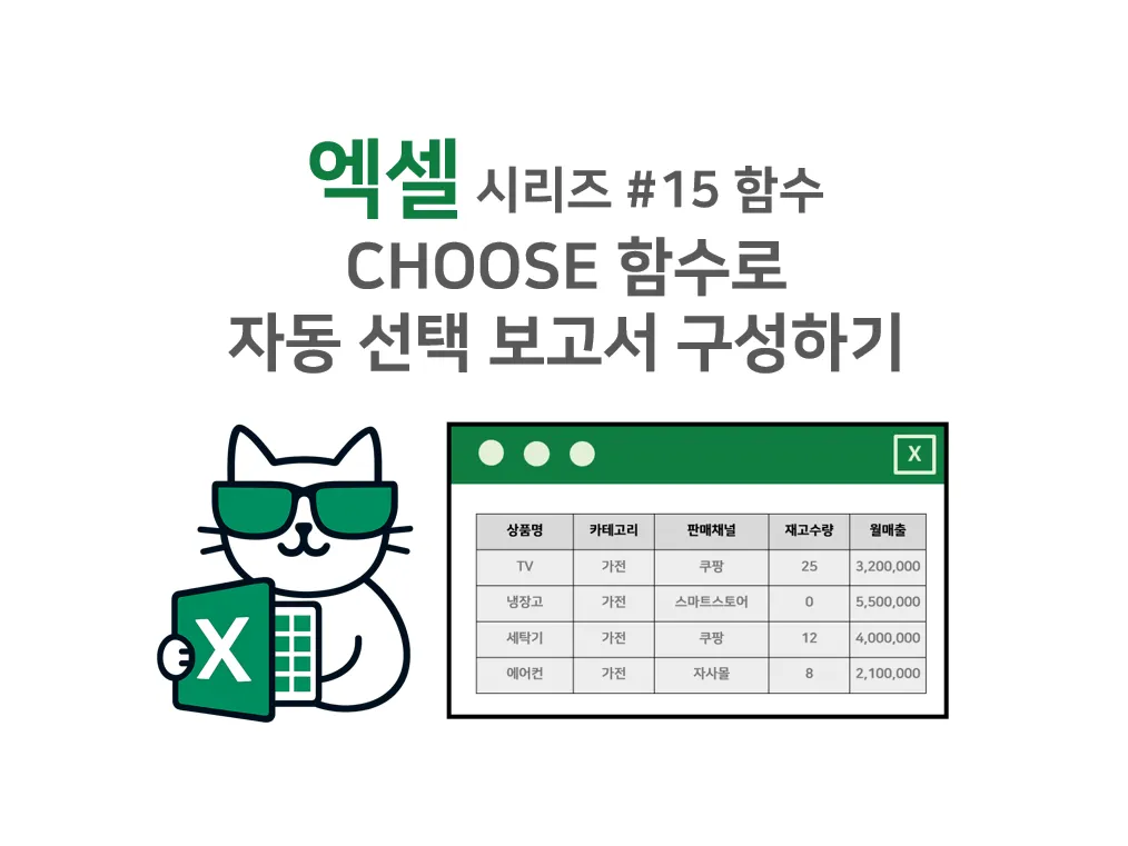 CHOOSE 함수는 단순하지만 응용 범위가 넓은 함수입니다. 특히 여러 보고서를 하나의 양식으로 관리할 때, “선택만 하면 자동 전환되는 스마트 보고서”를 구현할 수 있어 사무직 자동화 작업에서 매우 강력한 도구입니다.