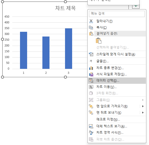 아래 코드를 복사하여 계열 값(V)에 붙여 넣고 확인을 누르세요