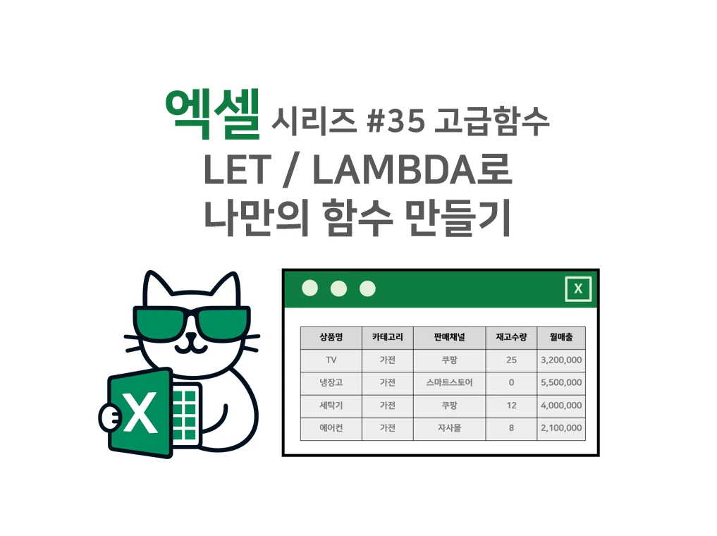 LAMBDA는 엑셀에서 “나만의 함수”를 만드는 기능입니다. VBA를 몰라도, LET과 LAMBDA만으로 함수 생성이 가능합니다.