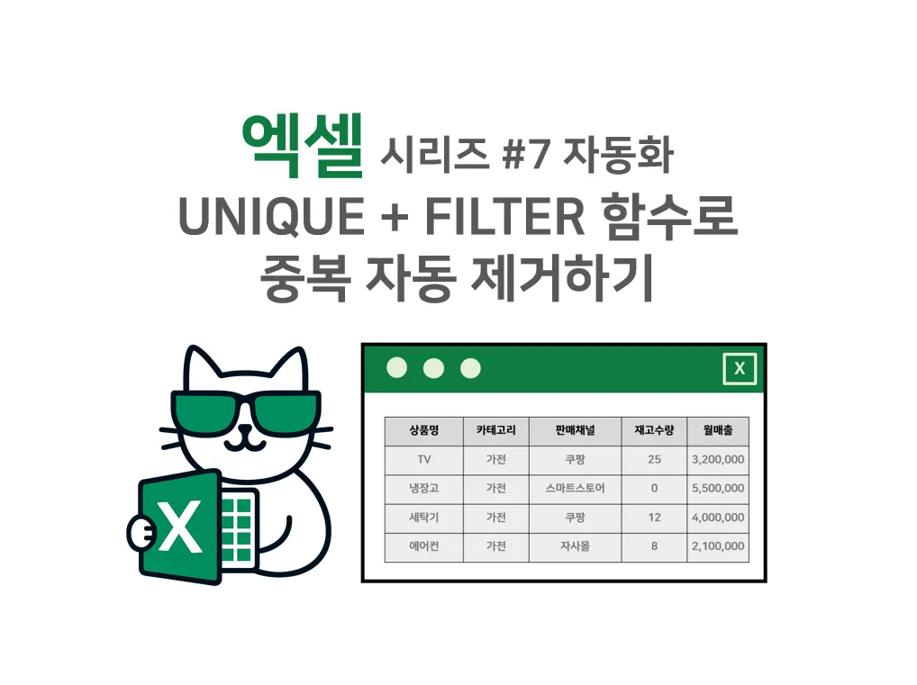 엑셀 시리즈 #7 자동화 - UNIQUE + FILTER 함수로 중복 자동 제거하기