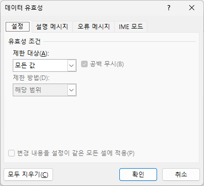 - 상단 메뉴에서 [데이터] → [데이터 유효성 검사]를 클릭합니다.