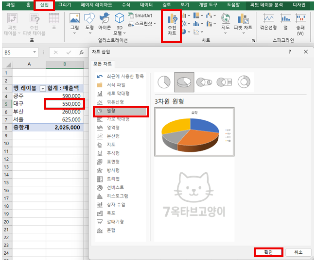 ⓒ7옥타브고양이 : "월별 매출 추이" 피벗테이블을 이용하여 차트 만들기