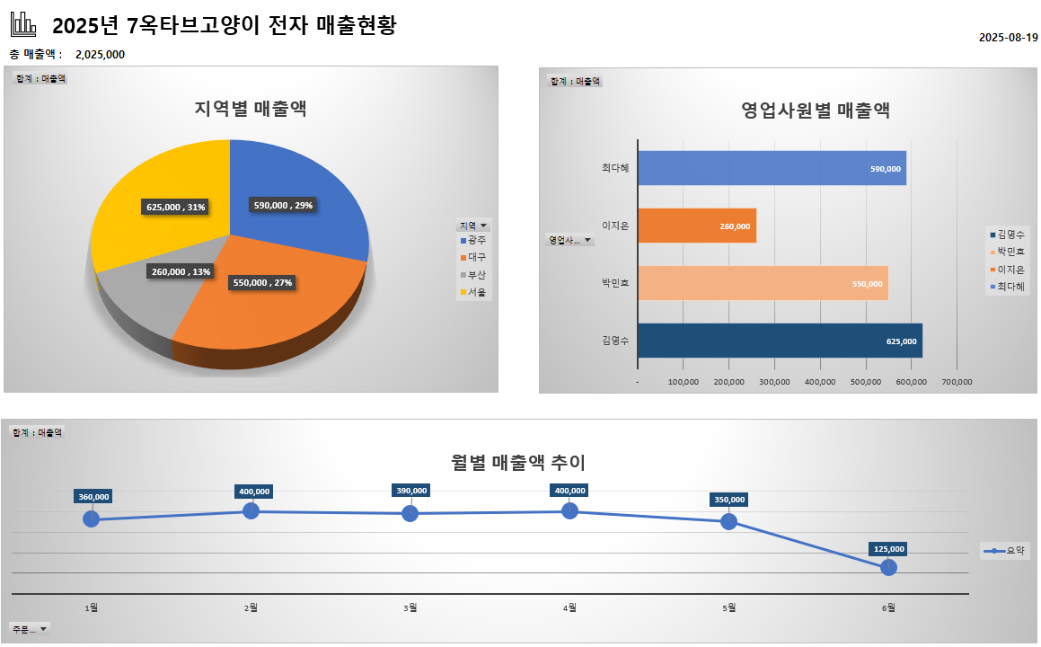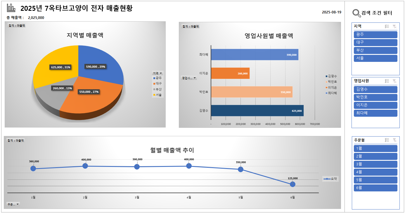 • 하단 전체: 월별 매출 추이 (라인 차트)
