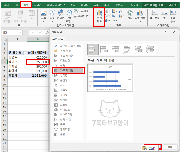 ⓒ7옥타브고양이 : "영업사원별 매출 실적" 피벗테이블을 이용하여 차트 만들기